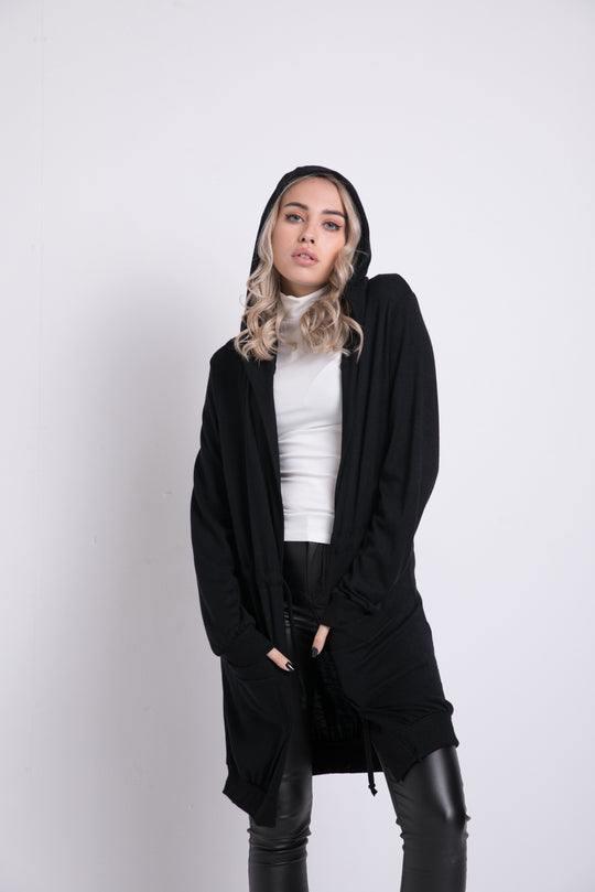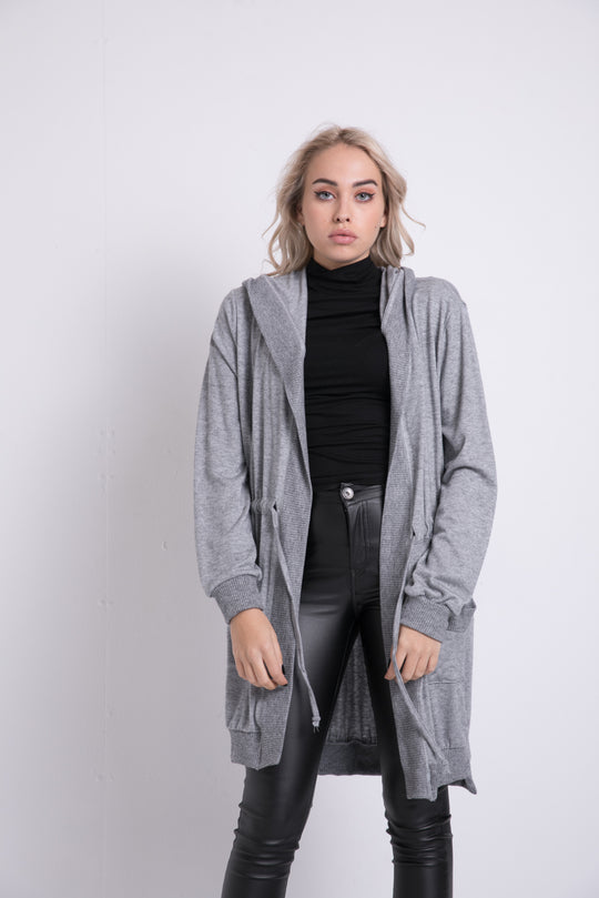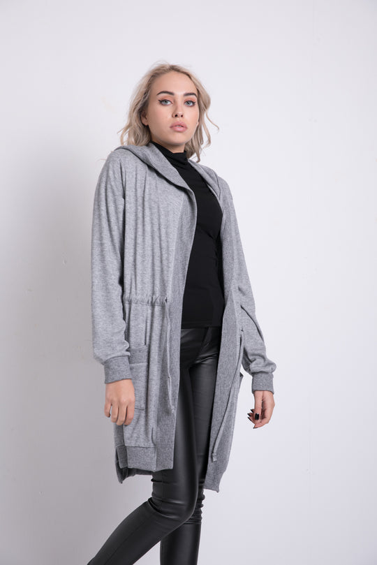 Γυναικεία πλεκτή ζακέτα με κουκούλα