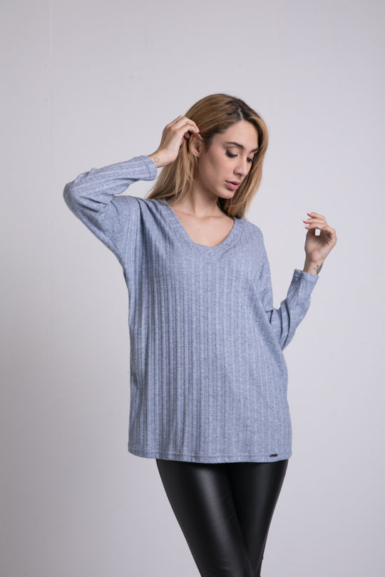 Γυναικεία πλεκτή μπλούζα σε σχήμα "V" στο λαιμό (One Size)